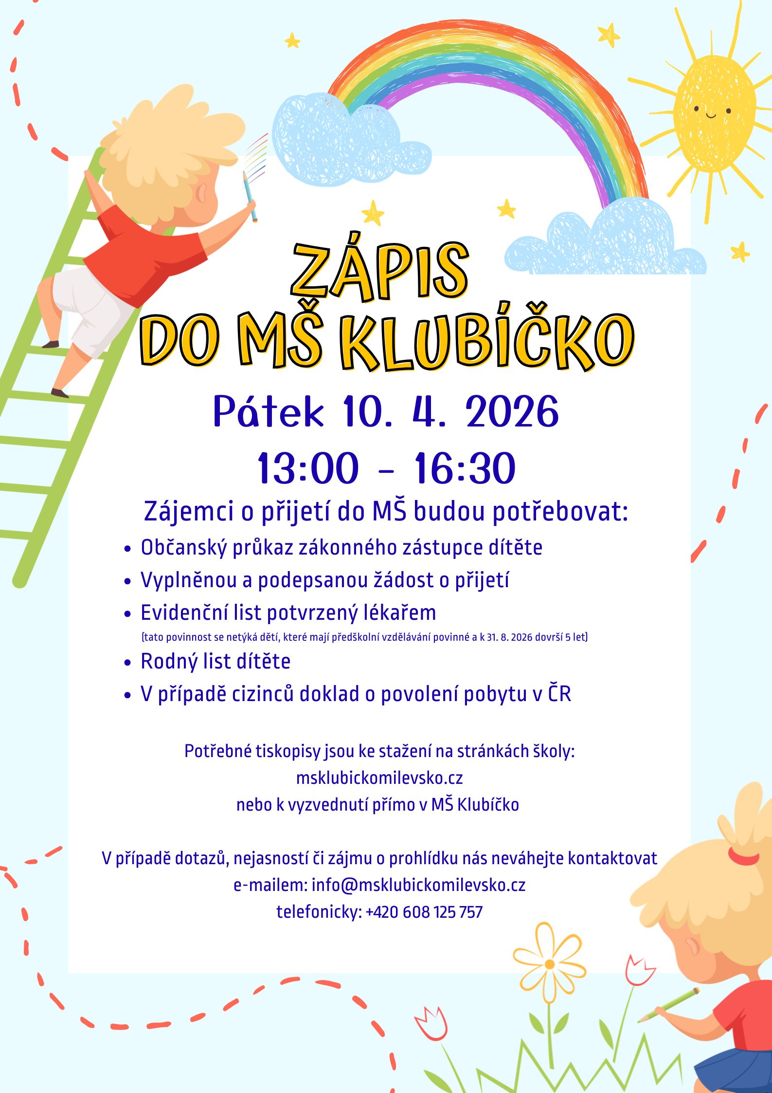 Copyright 2026 © Mateřská škola Klubíčko - Milevsko. Všechna práva vyhrazena. Webové stránky vytvořil a spravuje HOTdesign.eu